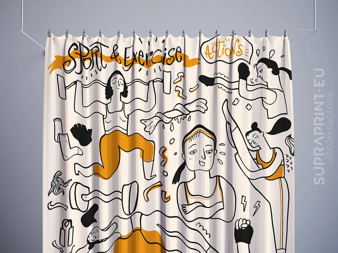 🏋️ Fitness clubs – Shower curtains with a logo on waterproof orlon.